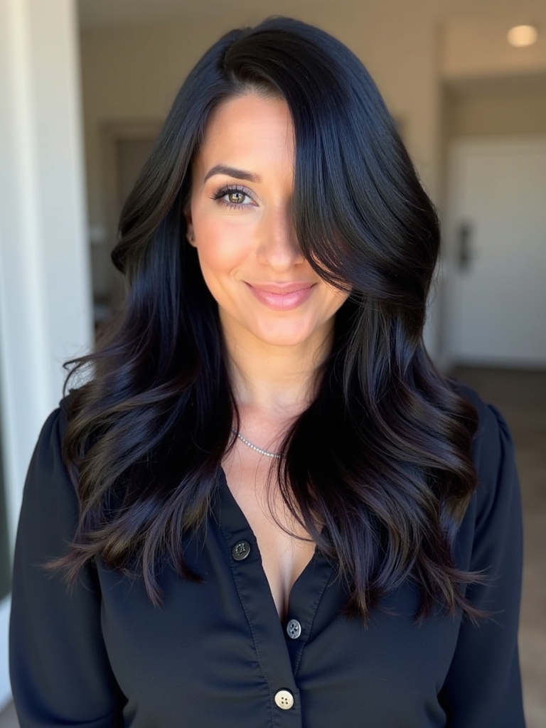 Sometimes the simplest look is the most dramatic, and bone-straight hair with a deep side part is a powerhouse among Hair Styles for One Shoulder Dresses. By partying the hair deeply to one side and tucking the smaller section behind the ear, you create an asymmetric shape that rivals the dress. This is a sleek Haïr Style For One Shoulder Dress option that exudes modern luxury. The hair should be flat-ironed to perfection with a shine serum applied for a liquid hair effect. The hair on the heavy side falls like a curtain, framing the face, while the tucked side exposes the jawline and neck. This look works best if the heavy side of the hair is on the opposite side of the dress strap, balancing the visual weight. It is a favorite of models and celebrities because it is clean and chic. It allows the dress to be the main event while the hair provides a sleek, glossy accessory. It works beautifully on medium to long lengths.
