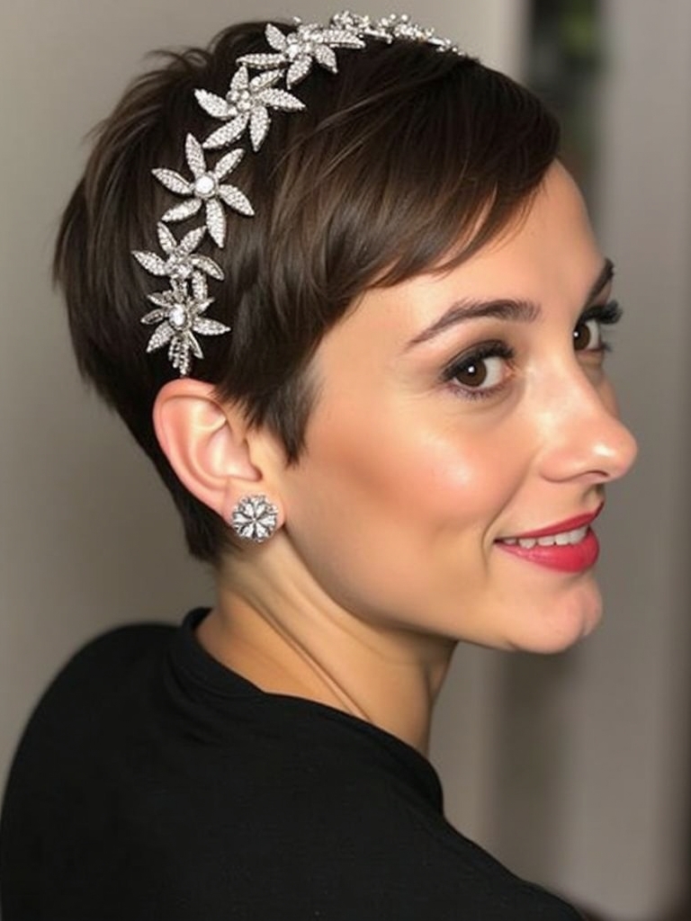 Swept Back Pixie Hair Styles for One Shoulder Dresses