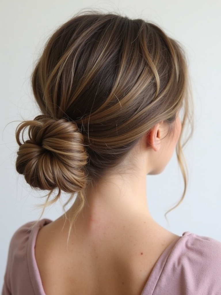 For a look that strikes a balance between effortless and chic, the messy side bun is a top contender among Hair Styles for One Shoulder Dresses. This style is particularly flattering because it adds volume and texture to one side of the face, counteracting the asymmetry of the dress. If you are a bridesmaid, this is often chosen as Bridesmaid Hair With One Shoulder Dress because it is uniform enough for a group but flattering on different face shapes. The key to a successful messy bun is texture; using a sea salt spray or texturizing powder before pinning the hair up can give it that desirable “undone” finish. You should position the bun on the side of the bare shoulder to fill the negative space, or on the strap side for a more contained look, though the former is more common. It is a versatile style that looks great with highlighted hair, as the twists and turns of the bun show off the dimension in color. It feels less stiff than a traditional updo, making it perfect for semi-formal events or parties.